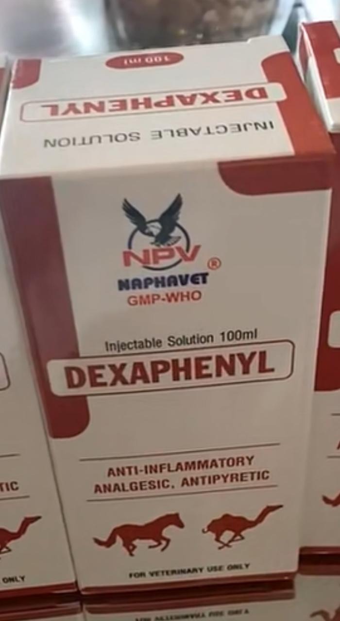 Dexaphenyl works as potent analgesic anti-inflammatory for training, specially designed for horses and camels of high performance competition. Dexaphenyl principal actives are dexamethasone and phenylbutazone.